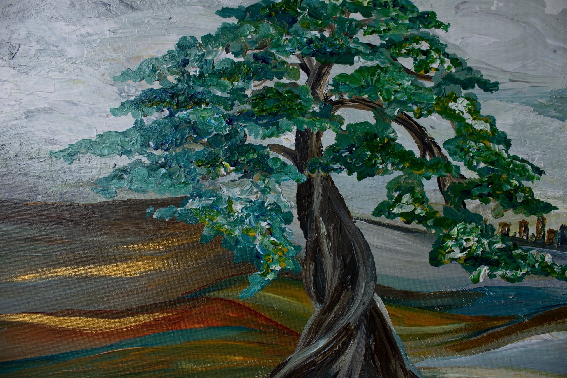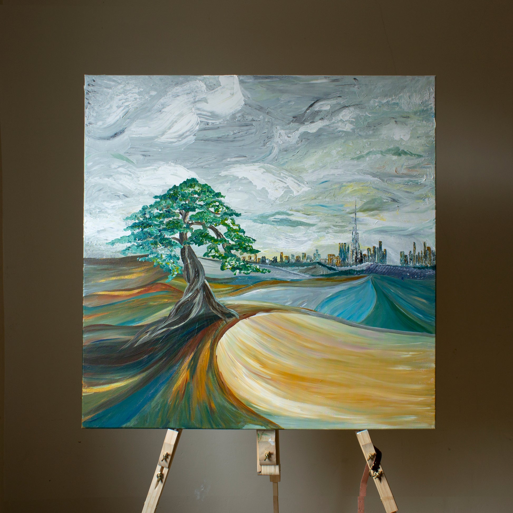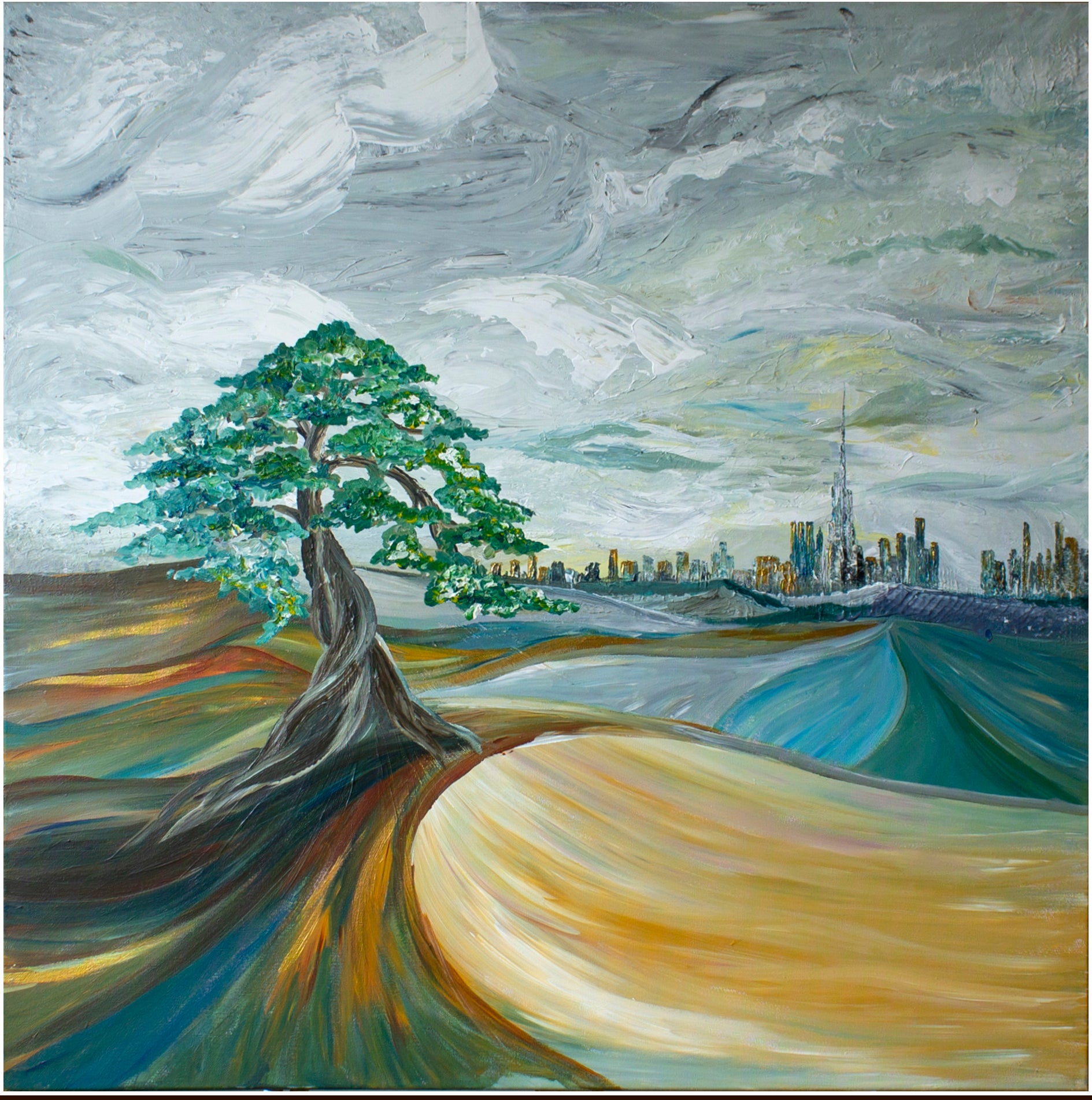 Streams of flowers in the desert. And the tree is like a metaphor - wherever you grow in the best way! Be strong and beautiful!